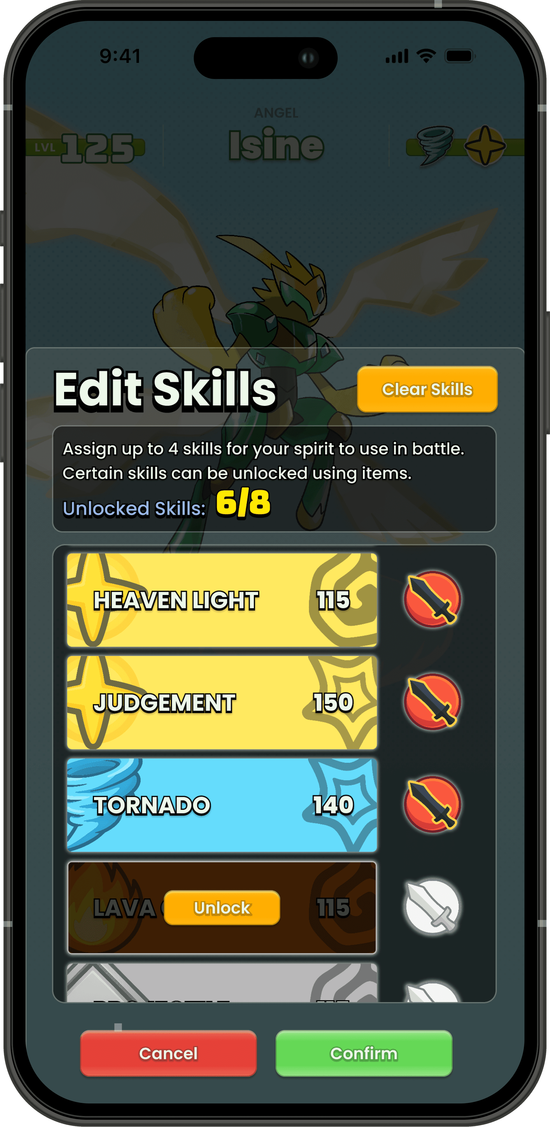 Spirits can learn multiple skills over time—but in battle, they can only equip 4 active moves at once. That means you’ll need to pick wisely and create a moveset that fits both your spirit’s stats and your overall team strategy.