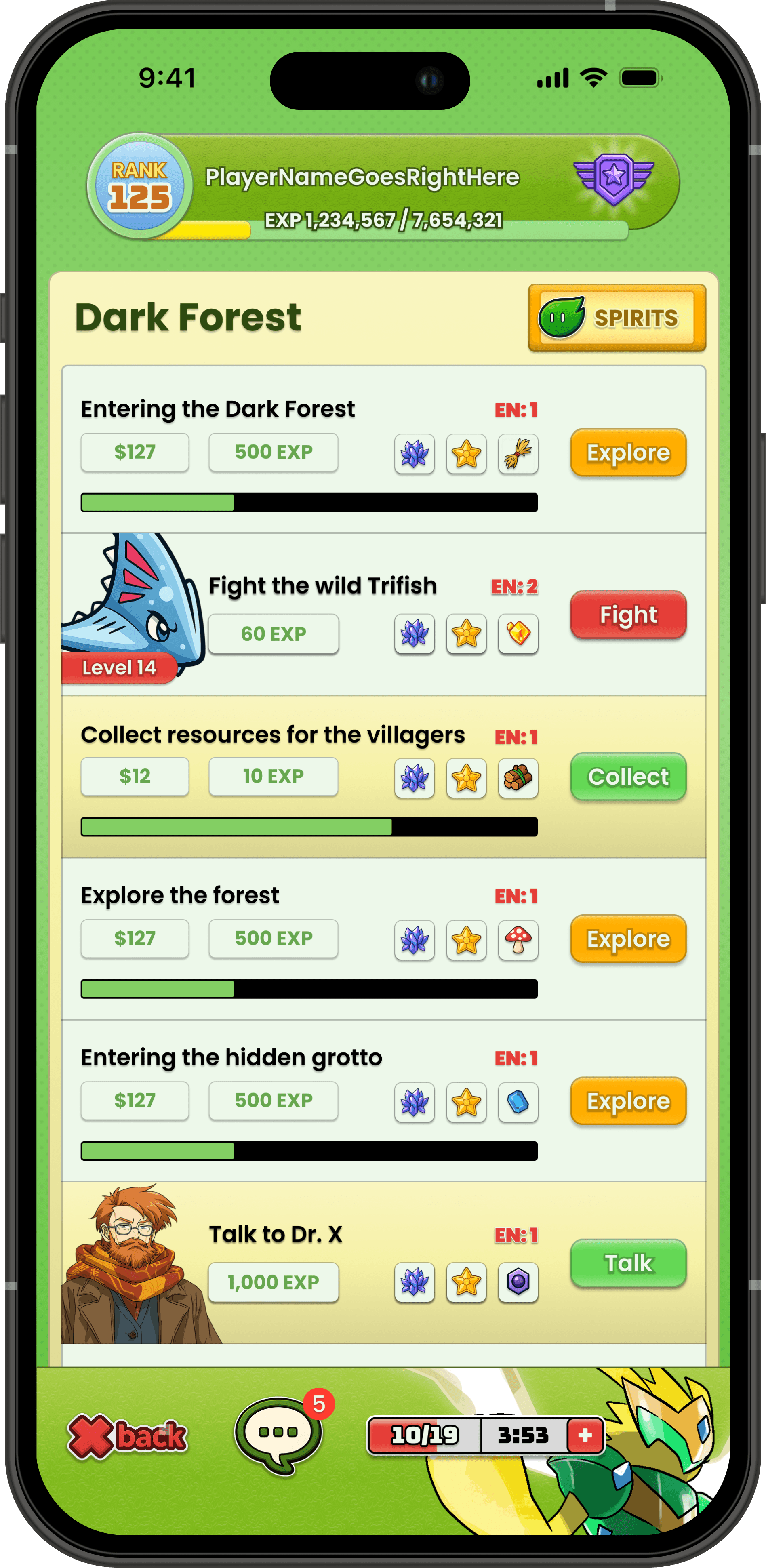 Go on Quests – Rank Up, Explore, and Find New Spirits